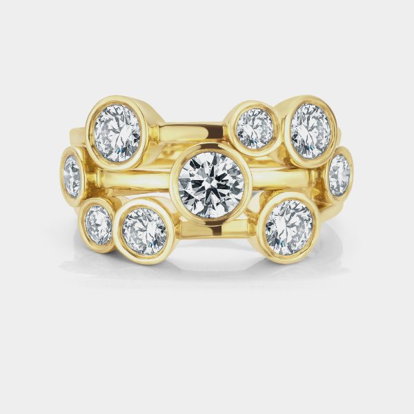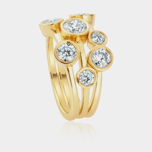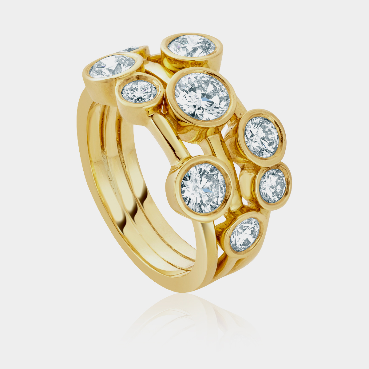 The original and still the best? This 9 stone “bubble” contains 2.50ct of shimmering brilliant cut diamonds. The ultimate “multi-tasker” – this piece can be viewed as an engagement, “combination” or eternity ring. Quite a statement!