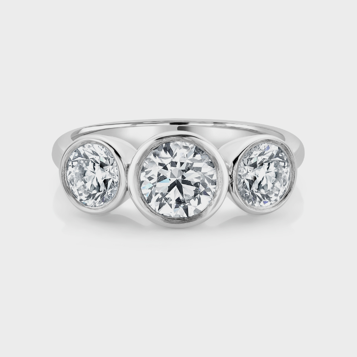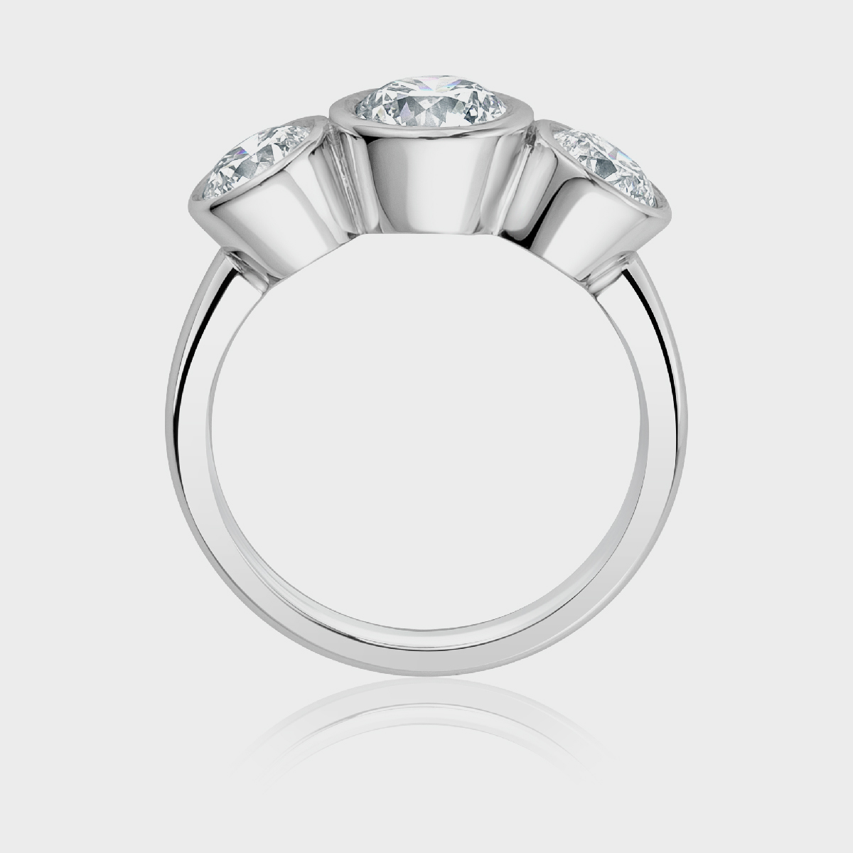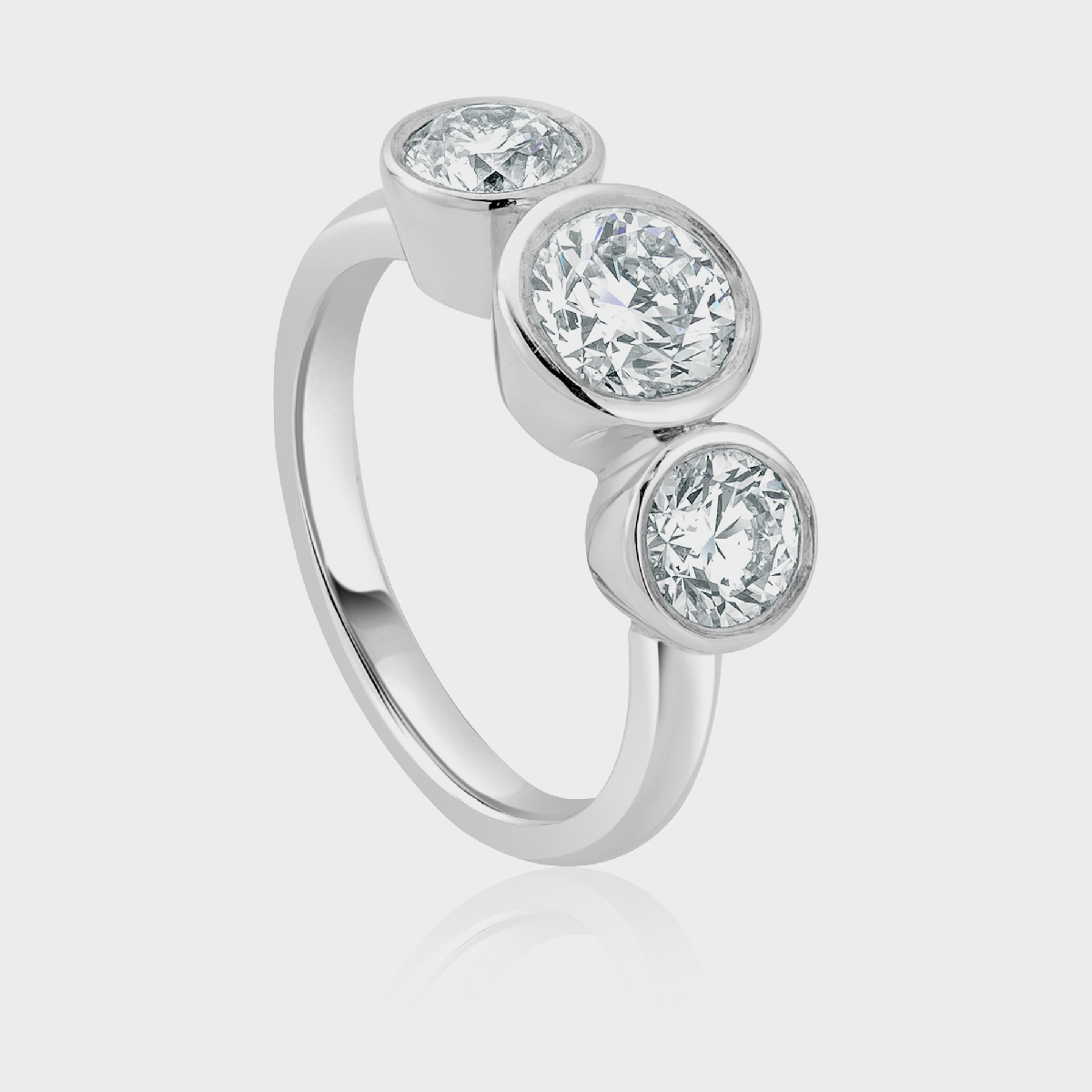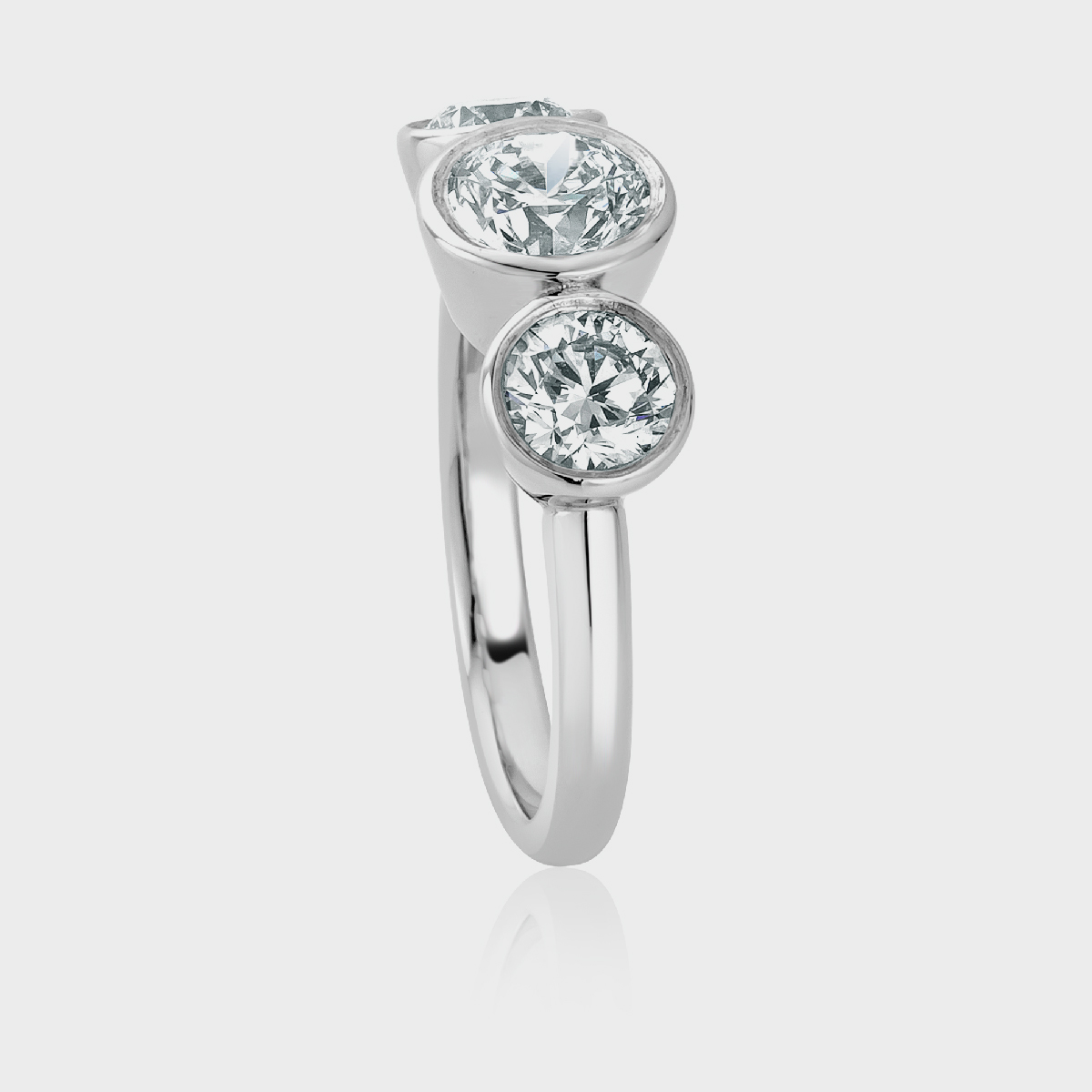 A modern classic – three stunning brilliant cut diamonds in a bespoke setting.  Simple, practical but beautifully proportioned.